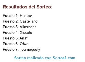 Lista de participantes: Castellano, Harlock, Xiscote, Anaf, Vikerness, Olwe, Toumequely.