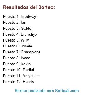 Lista de participantes: Galde, Champions, Josele, Brodway, Isaac, Padial, Kevin, Ian, Fandy, Erchuliyo, Willy, Antycules.