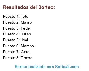 Lista de participantes: Julian, Fede, Toto, Joel, Gero, Mateo, Tincbo, Marcos.