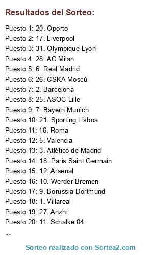 Resultados del sorteo: