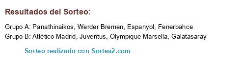 Lista de participantes: Olympique Marsella, Galatasaray, Fenerbahce, Atlético Madrid, Espanyol, Juventus, Werder Bremen, Panathinaikos.