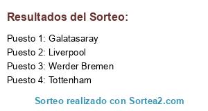 Lista de participantes: Werder Bremen, Galatasaray, Tottenham, Liverpool.