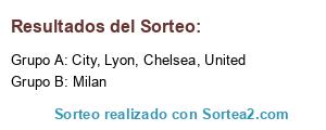 Lista de participantes: City, United, Chelsea, Lyon, Milan.