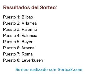 Lista de participantes: Bilbao, Roma, Bayer, Arsenal, Palermo, Villarreal, Valencia, Leverkusen.