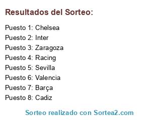 Lista de participantes: Barça, Zaragoza, Chelsea, Valencia, Inter, Sevilla, Cadiz, Racing.