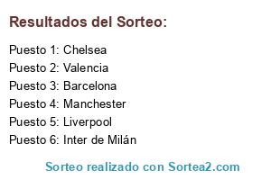 Lista de participantes: Inter de Milán, Manchester, Chelsea, Liverpool, Barcelona, Valencia.