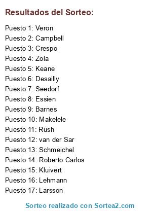 Lista de participantes: Schmeichel, van der Sar, Kluivert, Desailly, Roberto Carlos, Rush, Seedorf, Lehmann, Veron, Crespo, Essien, Makelele, Larsson, Zola, Keane, Campbell, Barnes.
