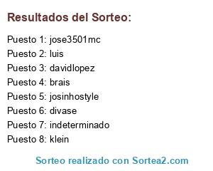 Lista de participantes: indeterminado, divase, brais, josinhostyle, klein, luis, jose3501mc, davidlopez.