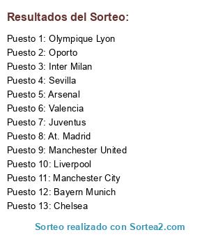 Lista de participantes: Inter Milan, Chelsea, Manchester United, Manchester City, Arsenal, Bayern Munich, Sevilla, Valencia, Liverpool, Olympique Lyon, Juventus, Oporto, At. Madrid.