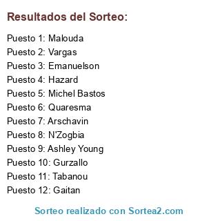 Lista de participantes: N'Zogbia, Vargas, Arschavin, Tabanou, Gurzallo, Malouda, Ashley Young, Emanuelson, Gaitan, Hazard, Michel Bastos, Quaresma.