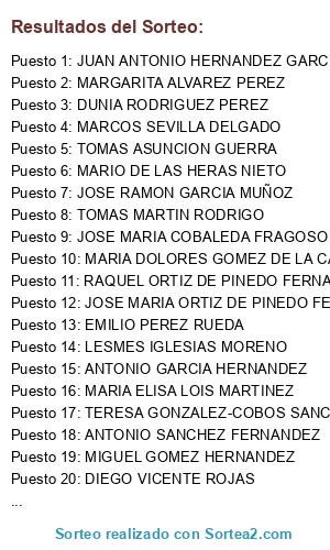 Resultados del sorteo:
