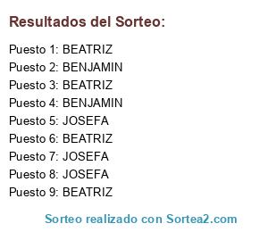 Resultados del sorteo: