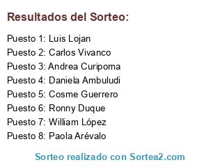 Lista de participantes: Andrea Curipoma, Cosme Guerrero, Ronny Duque, Carlos Vivanco, Daniela Ambuludi, Paola Arévalo, Luis Lojan, William López.