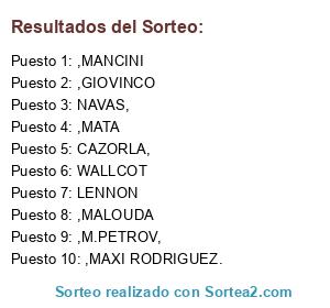 Lista de participantes: NAVAS,, CAZORLA,, WALLCOT, ,GIOVINCO, ,MATA, ,MALOUDA, ,MANCINI, ,M.PETROV,, LENNON, ,MAXI RODRIGUEZ..