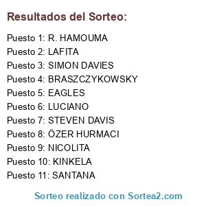 Lista de participantes: SANTANA, SIMON DAVIES, STEVEN DAVIS, LAFITA, EAGLES, R. HAMOUMA, KINKELA, LUCIANO, BRASZCZYKOWSKY, NICOLITA, ÖZER HURMACI.