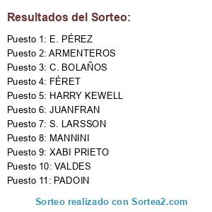 Lista de participantes: C. BOLAÑOS, XABI PRIETO, FÉRET, ARMENTEROS, JUANFRAN, VALDES, S. LARSSON, MANNINI, PADOIN, E. PÉREZ, HARRY KEWELL.