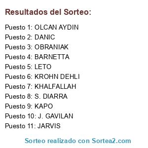 Lista de participantes: J. GAVILAN, DANIC, KHALFALLAH, S. DIARRA, KROHN DEHLI, BARNETTA, OLCAN AYDIN, LETO, JARVIS, KAPO, OBRANIAK.