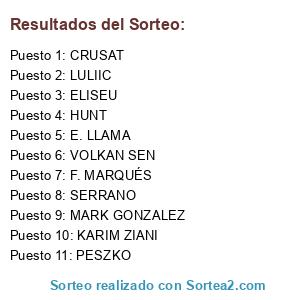 Lista de participantes: C.DELGADO, DOWNING, BEN KHALFALLAM, FOGGIA, KROHN DEHLI, M.G.PEDERSEN, GUSIEV, SAM, FALAMODI, KOMAN, GÖKDENIZ K, BAENEZZA, WEISS, Z.TOSSIC, REGUINALDO, R.R. DRENTHE, KINKELA, PEDRO LEON, KADER KEITA, ZILAIN, OBRANIAR, PESZKO, ODONKOR, STOCKER.