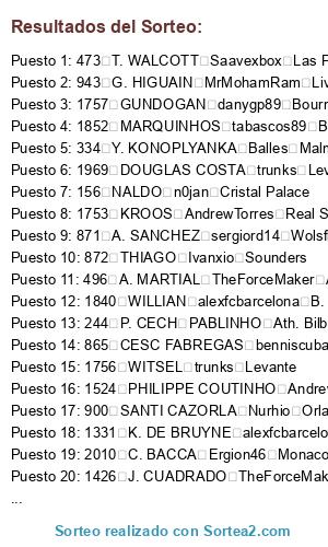 Resultados del sorteo: