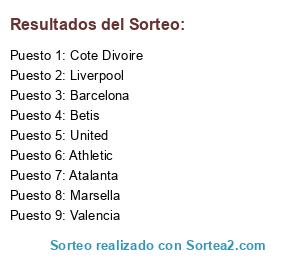 Lista de participantes: Valencia, Athletic, Barcelona, Cote Divoire, Marsella, Liverpool, United, Betis, Atalanta.