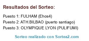 Lista de participantes: ATH.BILBAO (puerto santiago), FULHAM (Ehos4), OLYMPIQUE LYON (PULIFUMI).
