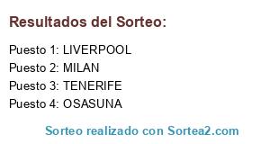 Lista de participantes: OSASUNA, LIVERPOOL, MILAN, TENERIFE.