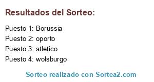 Lista de participantes: Borussia, oporto, atletico, wolsburgo.