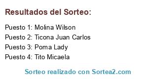 Lista de participantes: Molina Wilson, Poma Lady, Ticona Juan Carlos, Tito Micaela.