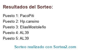 Lista de participantes: Nasbul, Patapalo34, Pbcruz95 (2 participaciones), Pedrofm, JaikLevel, Rcmone (2 participaciones), Money (2 participaciones), AL39 (2 participaciones), Dmart976 (2 participaciones), XeranG, PokerGamerHD (2 participaciones), PacoPiti, Mancuniano, Hp.cansino (2 participaciones), DaniLiz, ACG70, Ildanito (2 participaciones), Polizo, EliasMostoleño.