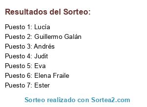 Lista de participantes: Lucía, Judit, Elena Fraile, Guillermo Galán, Pablo, Eva, Quique, Ester, Andrés.