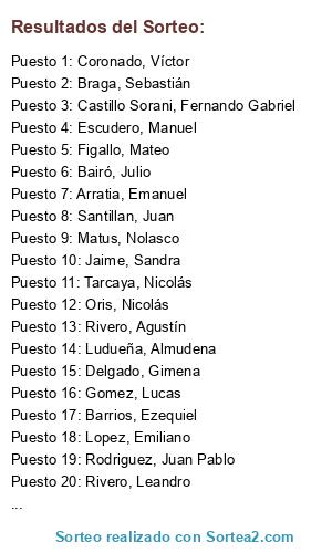 Resultados del sorteo: