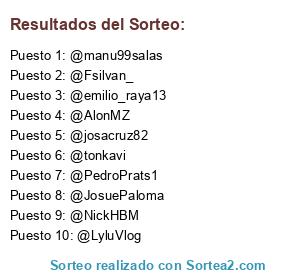 - 2016-04-26 13:39:35 (GMT): Se modifica el sorteo (los participantes y ganadores permanecen intactos)