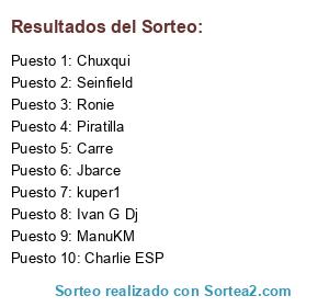 Lista de participantes: Carre, Ronie, Seinfield, Piratilla, Charlie ESP, Jbarce, kuper1, ManuKM, Ivan G Dj, Chuxqui.