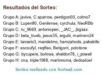 Lista de participantes: jbgsax, Lupen80, ru_9669, hamzahods, martinroma, antoniopen, beta_trueb, pakekillo, pototone, cna, dedoalciel, triple1988, C.sparrow, i_powell, jesus35, marinero24, perdigon00, Betigorri, Genilense, mandelmo, sheldon78, escoufyl, _JAC_, reqtfeo, lanselo3, ergutii, NeoRBb, bycupere, bolinxe, javive, colmo7, cyrchula.