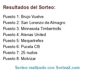 Lista de participantes: Minnesota Timbertrolls, Molvizar, San Lorenzo de Almagro, Atenas United, Mequetrefes, 25 nudos, Pucela CB, Brujo Vuelve.