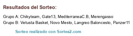 Lista de participantes: Chikyteam, Novo Mesto, Gate13, Panzer11, MediterraneaC.B, Merengasso, Vetusta Basket, Langreo Baloncesto.
