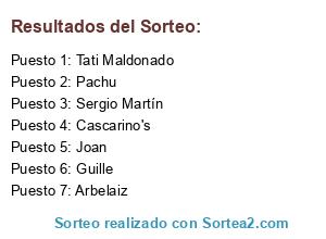 Lista de participantes: Asier, Antbariba, ReySombra, Sergio Martín, Arbelaiz, Carbariba, Gabriel, Sarabia, Gonzalo, g4f5g6, Tati Maldonado, Joan, CrisBR, Müller, Cascarino's, Guille, Pachu.
