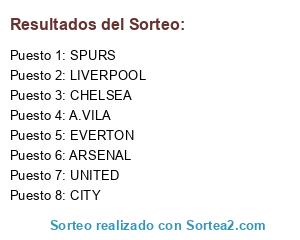 Lista de participantes: SPURS, ARSENAL, UNITED, CITY, EVERTON, CHELSEA, LIVERPOOL, A.VILA.