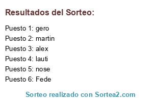 Lista de participantes: Fede, lauti, alex, gero, martin, nose.