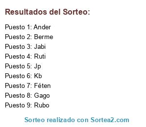 Lista de participantes: Ander, Berme, Féten, Gago, Jabi, Jp, Ruti, Kb, Rubo.