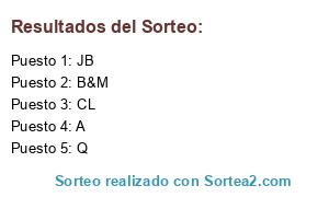 Lista de participantes: A(31 participaciones), B&M(25 participaciones), CL(30 participaciones), JB(35 participaciones), Q(2 participaciones).