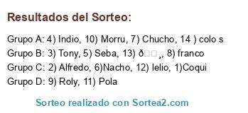 Lista de participantes: 1)Coqui, 2) Alfredo, 3) Tony, 4) Indio, 5) Seba, 6)Nacho, 7) Chucho, 8) franco, 9) Roly, 10) Morru, 11) Pola, 12) lelio, 13) 🐸, 14 ) colo s.