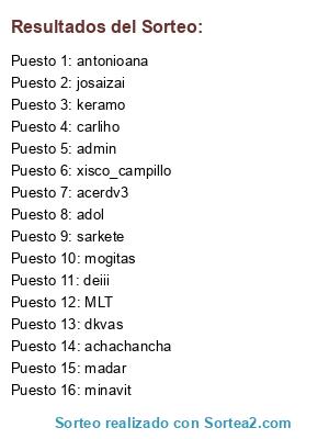Lista de participantes: xisco_campillo, acerdv3, antonioana, sarkete, MLT, admin, mogitas, dkvas, adol, josaizai, madar, minavit, deiii, carliho, keramo, achachancha.
