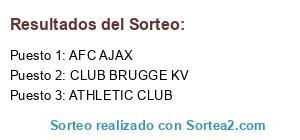 Lista de participantes: BRUGGE, ATHLETIC CLUB, AJAX.