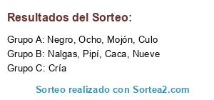 Lista de participantes: Caca, Pipí, Mojón, Negro, Nalgas, Cría, Culo, Ocho, Nueve.