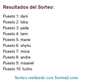 Lista de participantes: paila, andre, massiel, mane, dani, loba, lucho, shyriu, tami, mora.