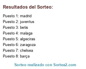 Lista de participantes: chelsea, madrid, betis, barça, juventus, malaga, zaragoza, algeciras.