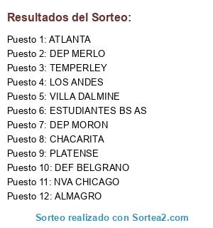 Lista de participantes: ALMAGRO, ATLANTA, CHACARITA, DEF BELGRANO, DEP MERLO, DEP MORON, ESTUDIANTES BS AS, LOS ANDES, NVA CHICAGO, PLATENSE, TEMPERLEY, VILLA DALMINE.