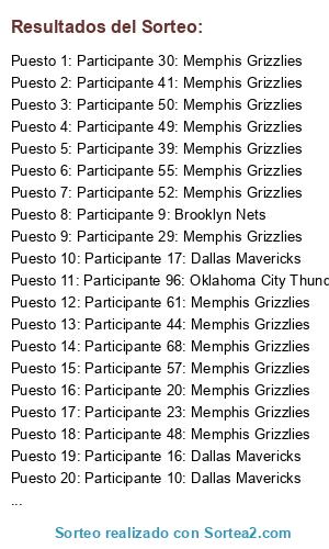 - Puesto 1: Participante 30: Memphis Grizzlies
