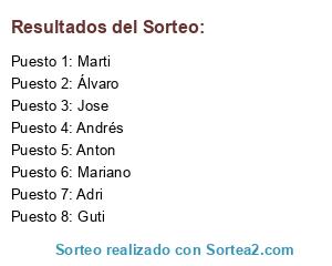 Lista de participantes: Álvaro, Marti, Adri, Andrés, Jose, Guti, Anton, Mariano.